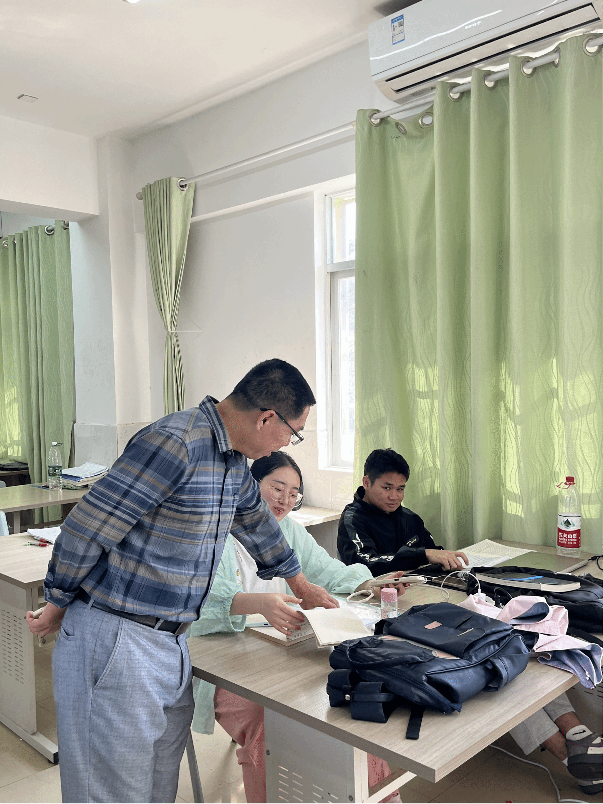 接着,劳文格书记一行来到了美安小学,王垂富校长等领导热情带领来到我校实习生的备课室,在交谈中,实习生们表示美安小学为他们提供的备课教室环境好,宽敞且安静,非常适合备课和学习,学习氛围浓厚。王垂富校长表示每年来校的实习老师都深受学生喜爱,希望双方加强合作,紧密联系。