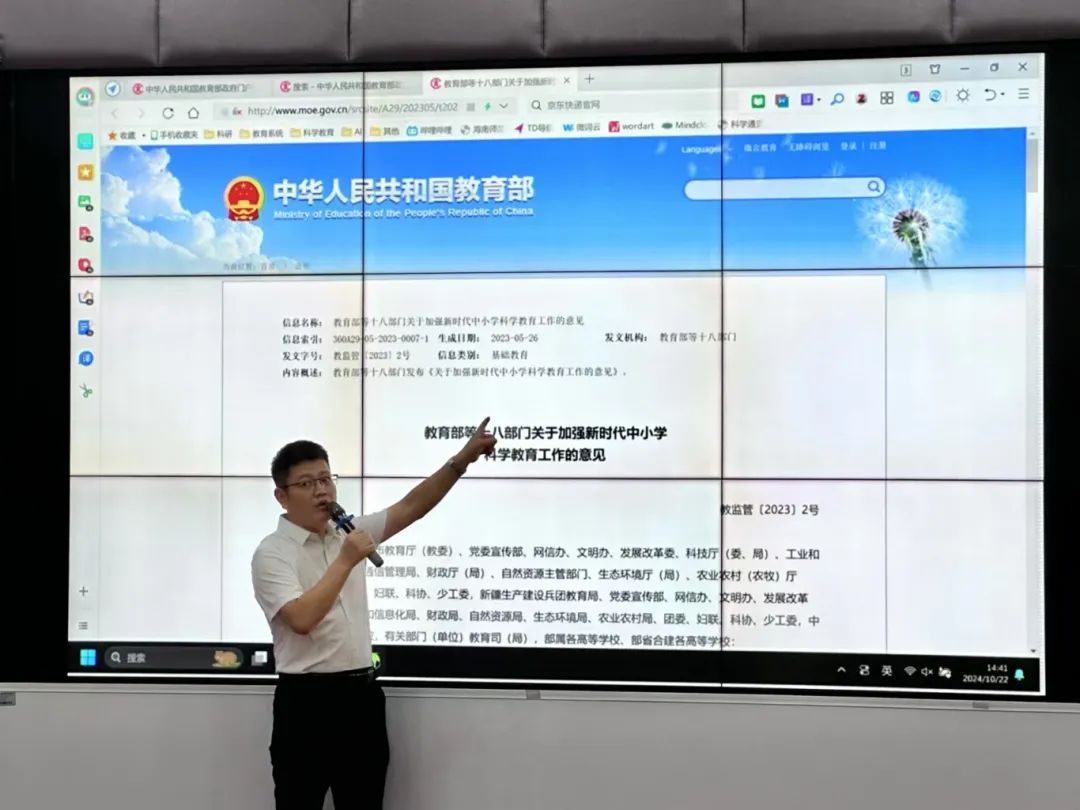 接着张甲锋老师向同学们介绍了中华人民共和国教育部发布的关于加强中小学科学教育工作的相关文件。从文件中同学们能了解到国家对科学教育工作的重视及科学教育专业良好的发展前景。