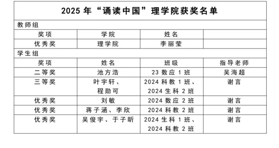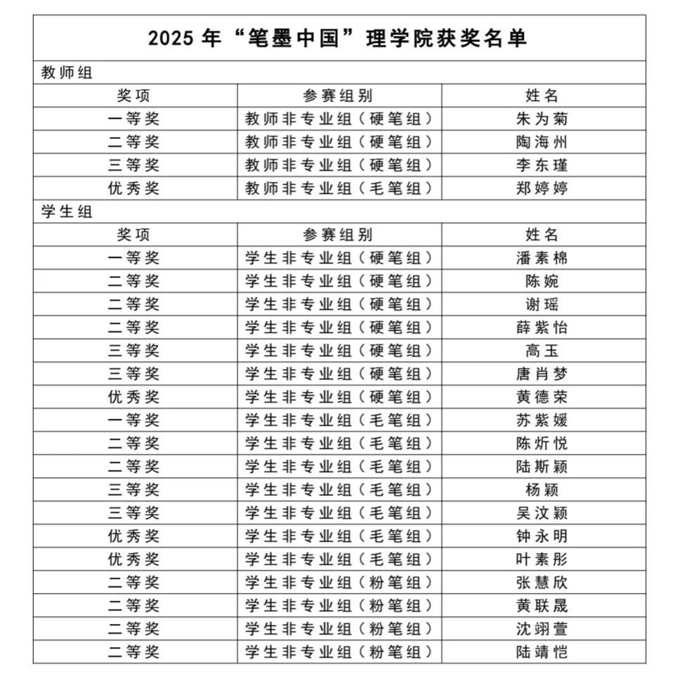 此次获奖佳绩,是学院深耕中华经典文化传承、创新育人模式的有力见证,凝聚着师生对传统文化的热爱与坚守,彰显了太阳成集团122ccvip在弘扬民族精神、提升文化素养中的使命担当!我们将以此为新起点,持续深化“以文化人”理念,创新经典诵读与书写实践活动形式,将中华优秀传统文化深度融入人才培养全过程,培育更多兼具文化底蕴与人文情怀的新时代学子,为校园文化建设与文化自信培育注入“理院活力”!再次向所有获奖师生致以热烈祝贺!感谢全体师生的积极参与与不懈努力,期待太阳成集团122ccvip在传承经典、弘扬文化的道路上续写更多精彩篇章!