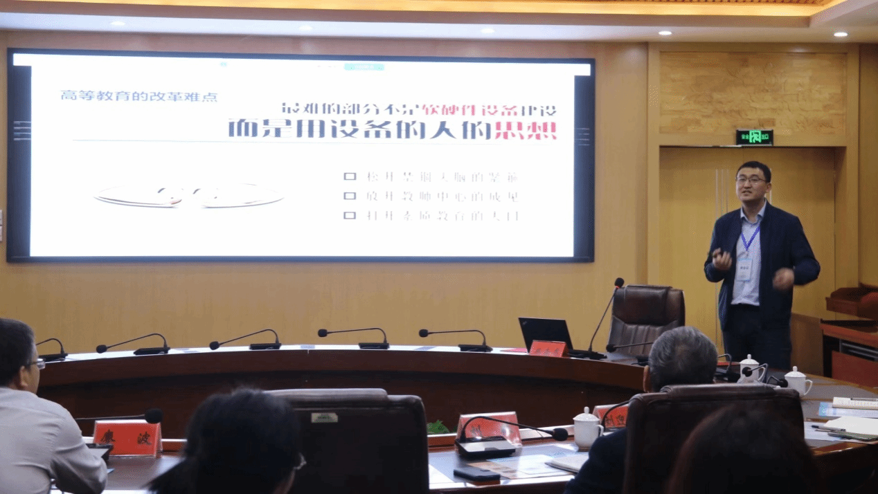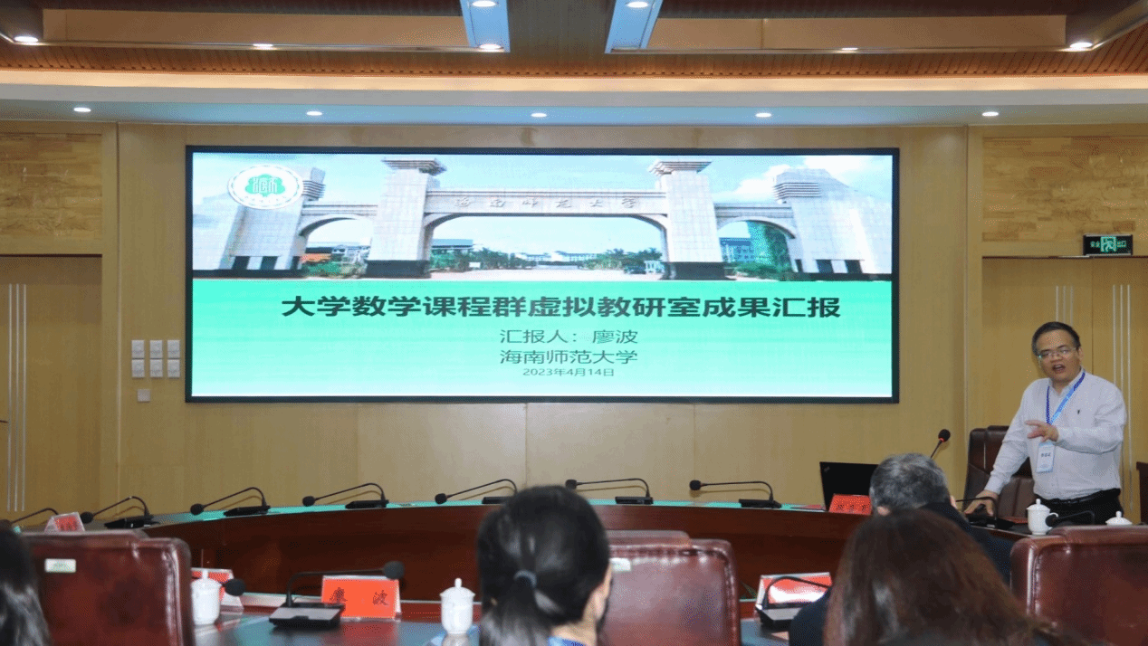 海南师范大学数统学院廖波院长抛砖引玉,首先对大学数学课程群虚拟教研室建设情况进行了汇报。