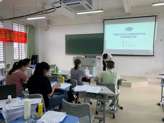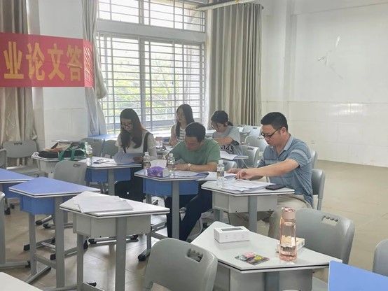 5月7日上午,各位老师和毕业生们早早地来到实验楼B栋做好答辩前的最后准备。
