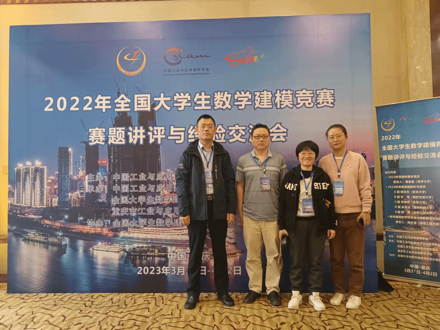 3月31日-4月2日,太阳成集团122ccvip库俊华副院长、数学系王海华主任、陈岳婷副主任、王李茹老师赴重庆参加由中国工业与应用数学学会主办的“2022年全国大学生数学建模竞赛赛题讲评与经验交流会”。