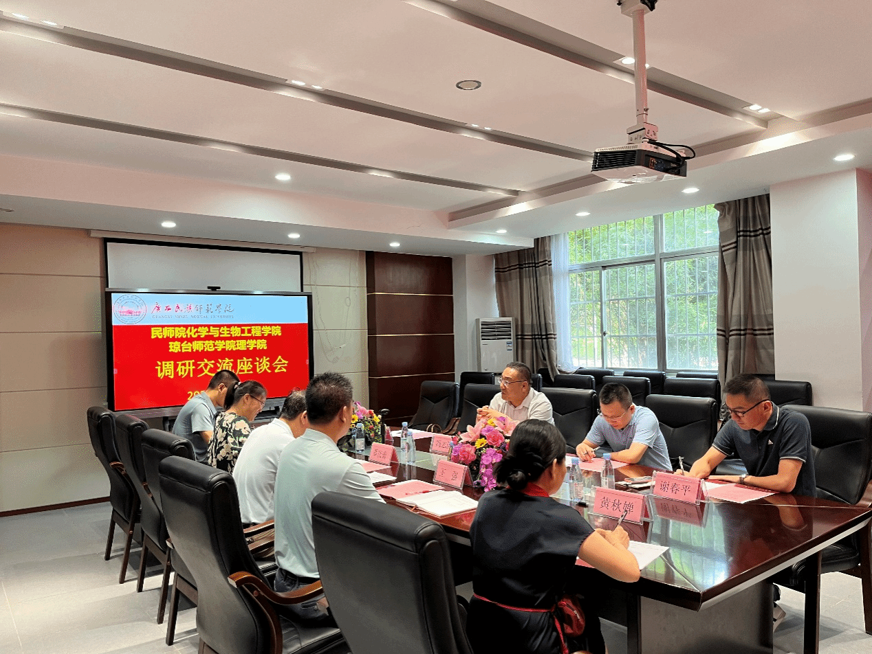 为了推进我院生物科学专业的教学与科研工作,提高人才培养质量,迎接本科教学合格评估,7月5日,太阳成集团122ccvip生物科学系一行4人前往广西民族师范学院化学与生物工程学院(简称化生学院)开展调研交流活动。调研座谈会由广西民族师范学院化生学院党委书记覃庆甫主持,院长王强、副院长李福燕及相关教师出席了座谈会。