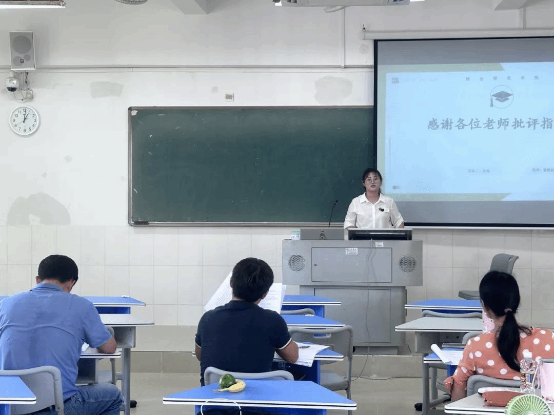 答辩时,首先由答辩学生展示PPT,每位同学围绕选题依据及意义、研究目标与主要内容、研究方法、研究手段及参考文献等内容展开介绍。