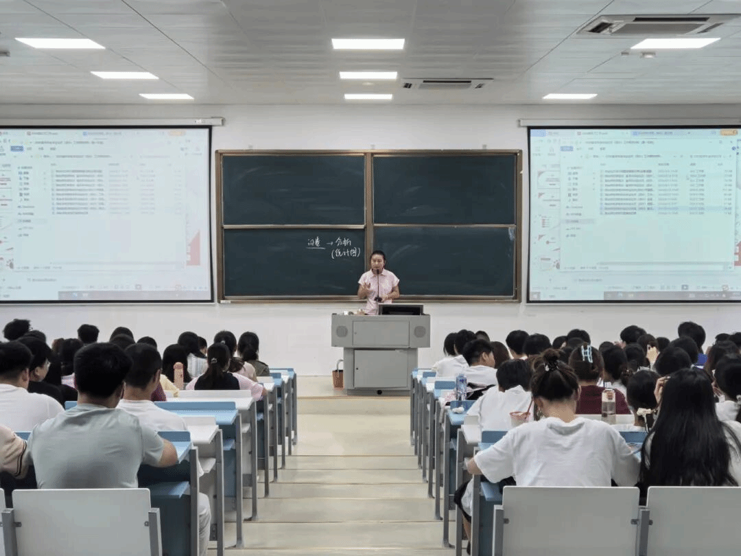 陈岳婷老师首先向全体同学详细阐述本次讲座的召开目的,并向即将前往实习单位的大四学生明确实习期间的重要注意事项。