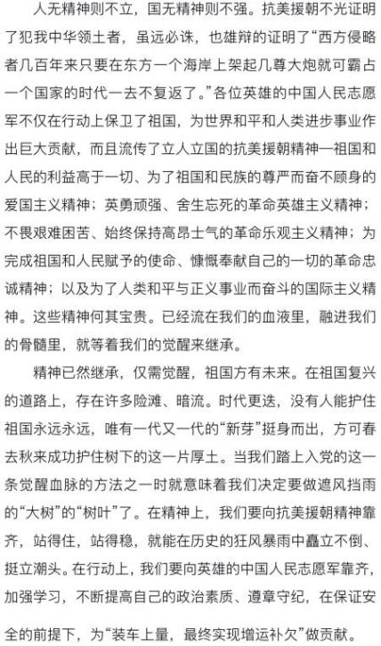 哪有什么岁月静好,不过是有太多前辈负重前行,为致敬最可爱的中国人民志愿军,同志们纷纷在朋友圈发表感触或撰写心得体会。