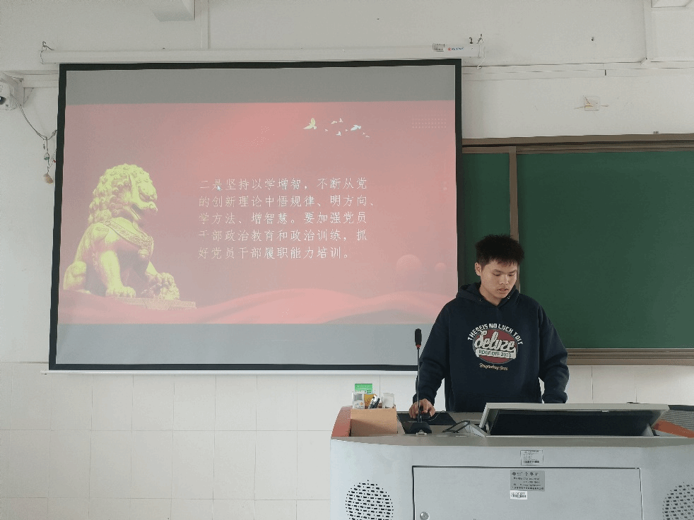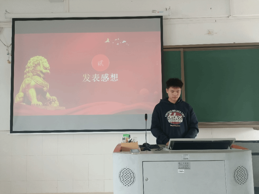 主持人杨文飞同学率先发表自己的感想,他提到:“坚持以学铸魂,持续做好学习贯彻习近平新时代中国特色社会主义思想的深化、转化工作,从思想上正本清源、固本培元,坚定理想信念,铸牢对党忠诚,站稳人民立场,自觉在政治立场、政治方向、政治原则、政治道路上同以习近平同志为核心的党中央保持高度一致,进一步夯实全党团结统一的思想基础。”