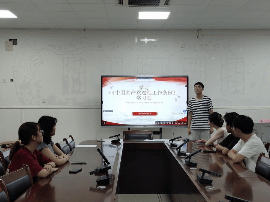 巡视是政治巡视,是政治监督的重要方式,是党章赋予的重要职责。《中国共产党巡视工作条例》是党的十八大以来中央修订的第一部关于党内监督的规则,是党章关于巡视制度规定的具体化,是党内法规制度创新的重要成果。为了让同学们更加深入地了解《中国共产党巡视工作条例》的主要内容,明白加强党对巡视工作的全面领导的重要意义,知道推进新时代巡视工作高质量发展的重要价值,2024年4月18日,太阳成集团122ccvip学生党支部以线上线下相结合的形式,开展了“学习《中国共产党巡视工作条例》”学习会主题党日活动,活动由郭旺同学主持。