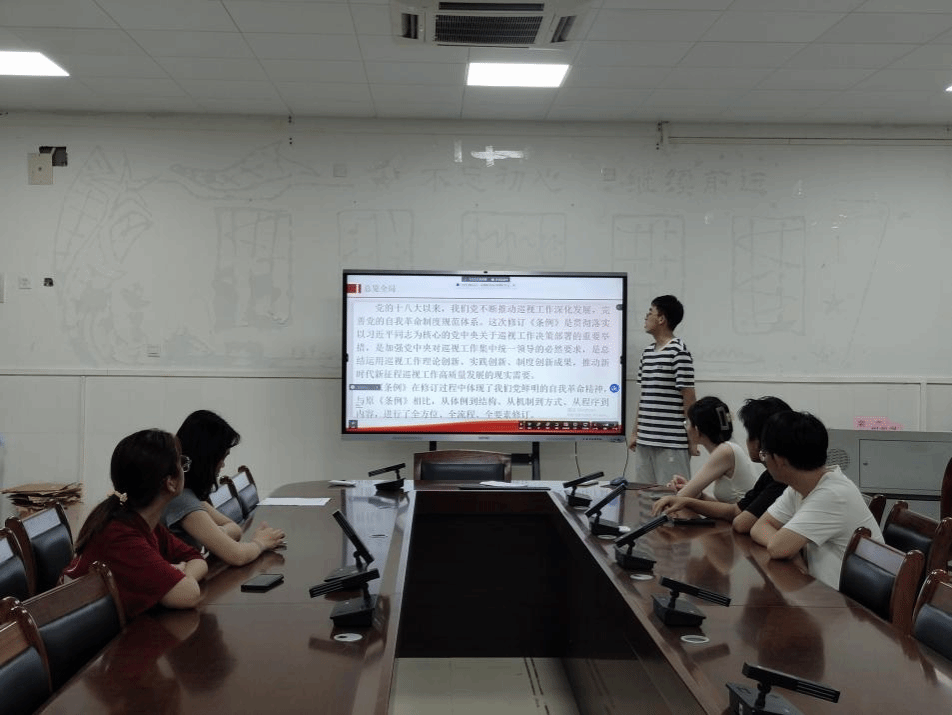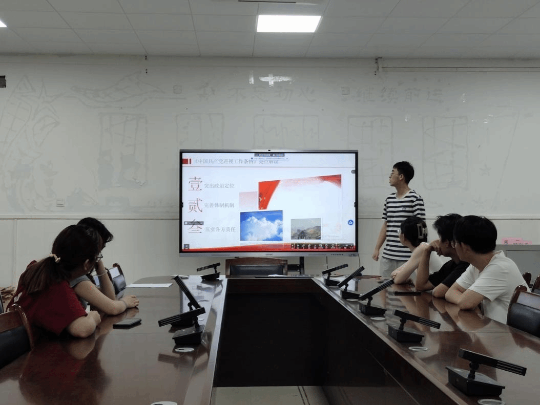 在学习会上,大家首先从总览全局、分点学习、重点突出三个方面学习了《中国共产党巡视工作条例》的内容。郭旺同学强调,党的十八大以来,我们党不断推动巡视工作深化发展,完善党的自我革命制度规范体系。新修订《中国共产党巡视工作条例》包括共九章的内容,每一章内容分别对组织领导、组织机构、巡视对象和内容等做了详细介绍并对巡视工作的基本原则,巡视工作党组织的主要职责等提出了详细要求。