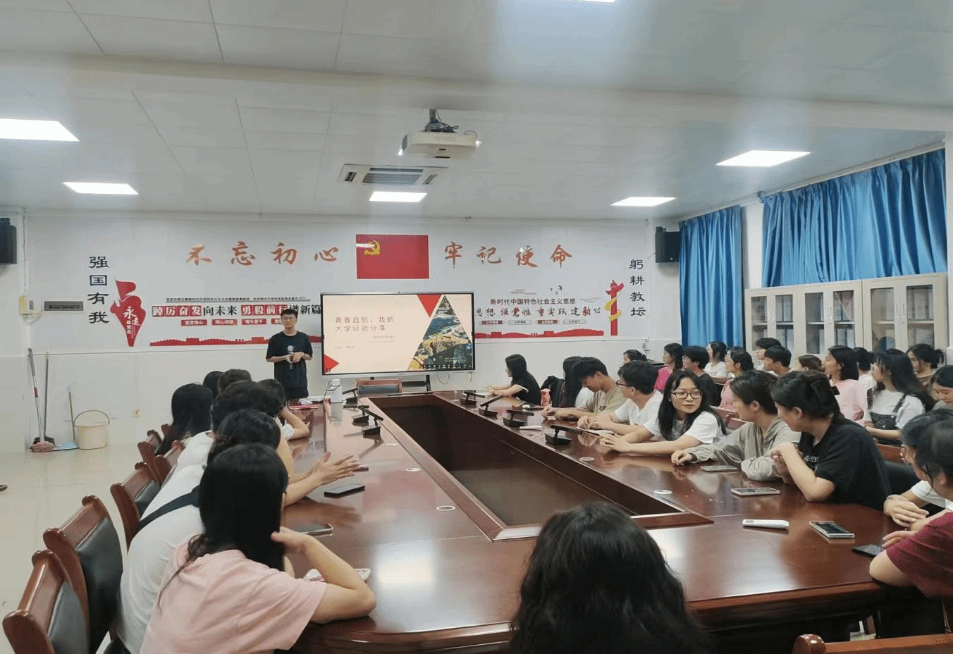 随后,由周昭均同志和邓婷同志依次进行分享。周昭均同志进行了以下分享,他表示大学期间一定要设定目标,结合自身兴趣、能力以及自身专业的市场需求,制定切实可行的计划,并在大学期间不断调整和完善。同时,要注重平衡学术学习与实践活动,全面提升自己的综合素质。