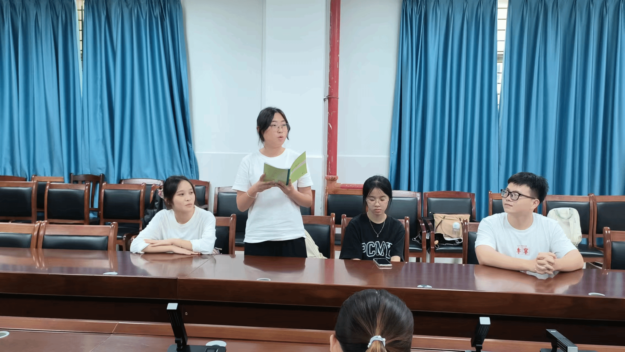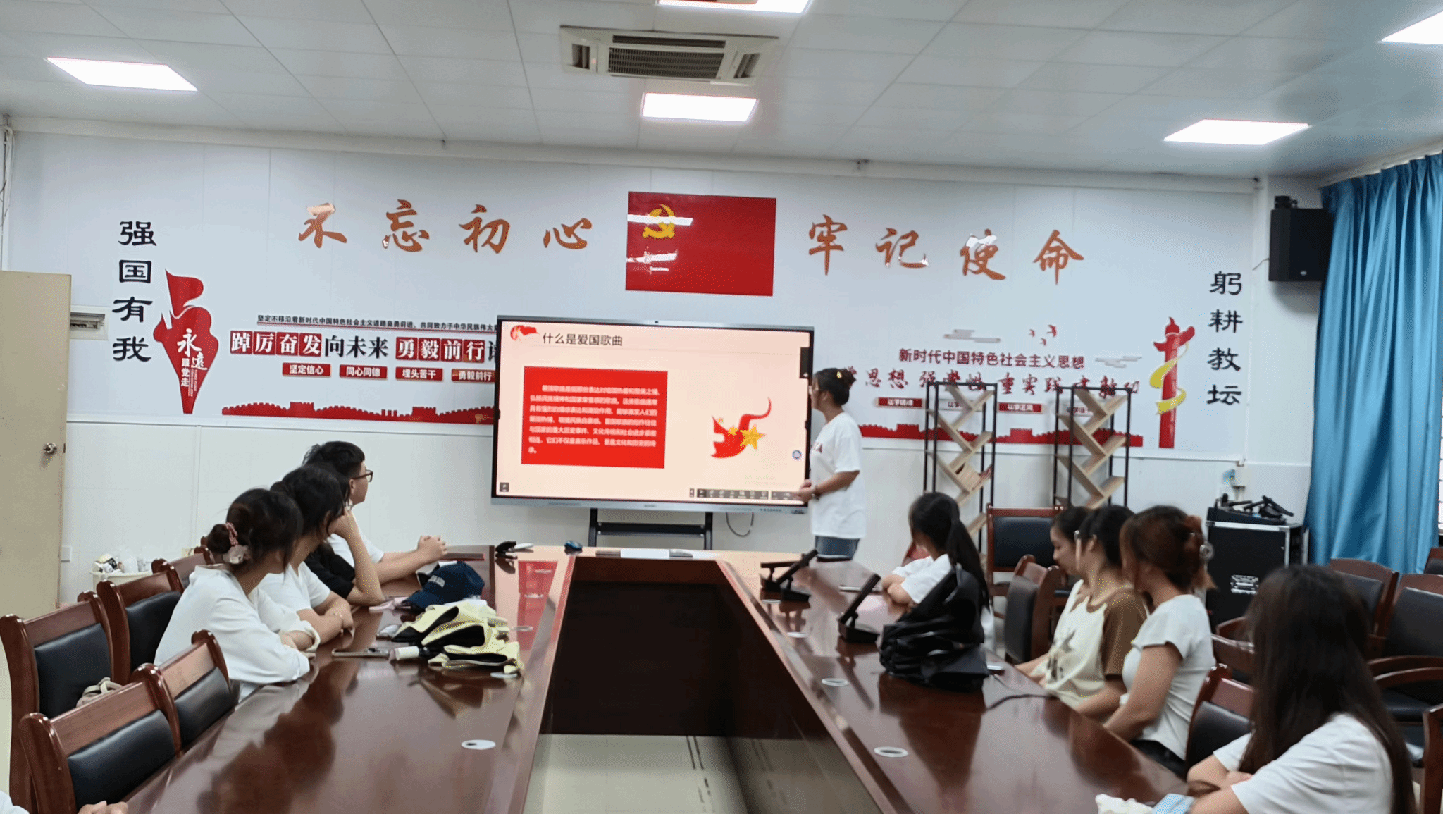 会议第一项,邹静同志带领大家了解相关爱国歌曲。这些歌曲传递了对祖国和党的热爱。当提起它们,那熟悉的旋律仿佛就在我们耳边回荡,油然而生一种民族自豪感。这不仅是一种文化的输出,更是挖掘人们内心深处的爱国情怀。