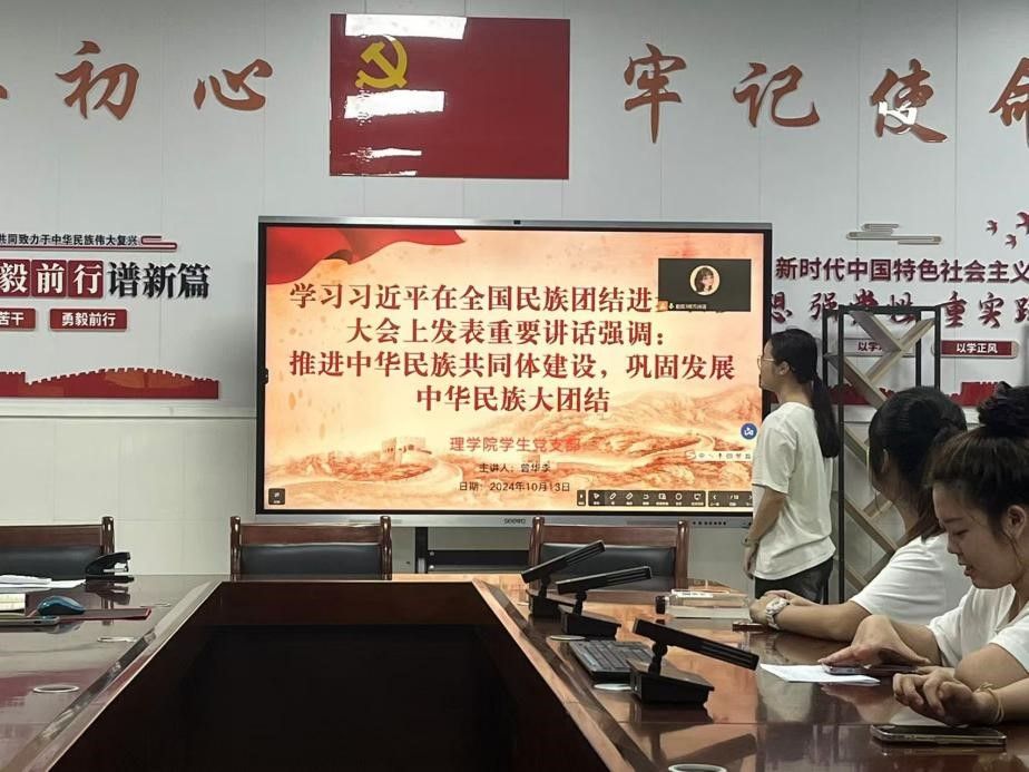 2024年10月13日,太阳成集团122ccvip学生党支部在实验楼B107会议室开展了“学习贯彻习近平在全国民族团结进步表彰大会上重要讲话精神”主题党日活动。在新时代的征程上,实现伟大复兴,推进中国式现代化、实现共同富裕,一个民族都不能少。要加快民族地区高质量发展,促进各地区在经济上更加紧密地连在一起、融为一体,扎实推进各民族共同富裕。本次活动旨在学习习近平在全国民族团结进步表彰大会上发表重要讲话强调:推进中华民族共同体建设,巩固发展中华民族大团结。
