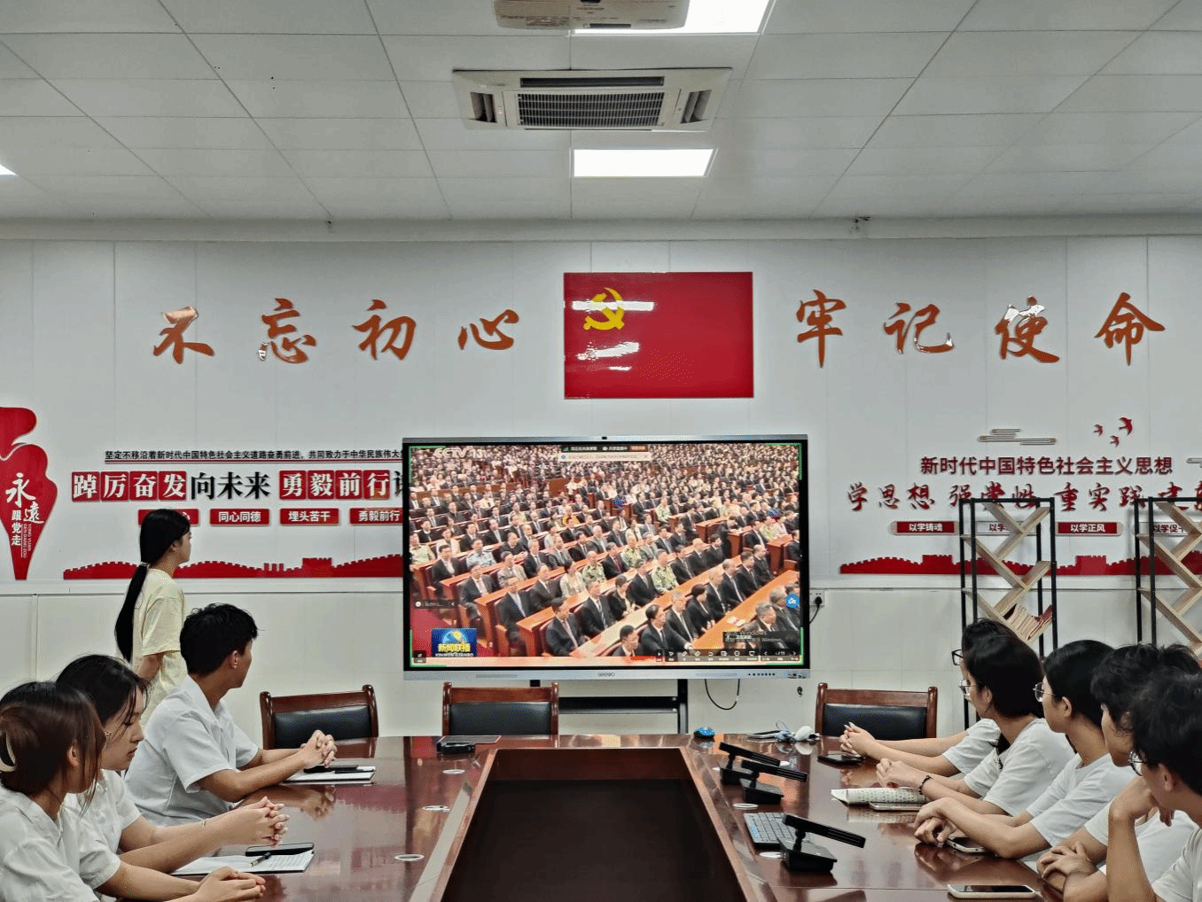 为深入学习贯彻习近平新时代中国特色社会主义思想,坚定道路自信、理论自信、制度自信、文化自信,发展全过程人民民主,坚持好人民代表大会制度,增强学生党支部成员的政治理论基础,2024年10月12日,太阳成集团122ccvip学生党支部在实验楼B107会议室开展了学习贯彻“习近平在庆祝全国人民代表大会成立70周年大会上发表的重要讲话”学习会。
