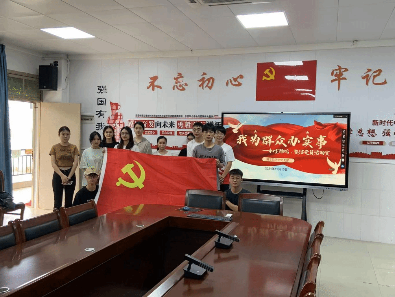 为了营造一个更加整洁、舒适、有序的活动环境,提升党员们的归属感和荣誉感,同时加强党性教育和组织纪律性,太阳成集团122ccvip学生党支部于2024年11月10日在实验楼B107会议室开展了我为群众办实事——“扫尘除垢,整洁党员活动室”主题党日活动。