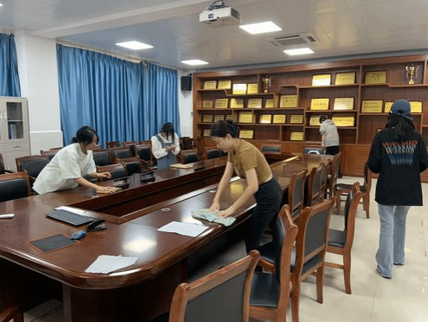 党员活动室是党员们进行理论学习、交流心得、开展组织活动的重要场所,其环境的整洁与否直接影响到党员们的活动体验和党组织的形象。活动当天,同志们精神饱满地带着清洁工具,分工明确,有条不紊地开始了清洁工作。有的同志负责擦桌子、门口、窗户,有的同志负责搬凳子、扫地拖地。