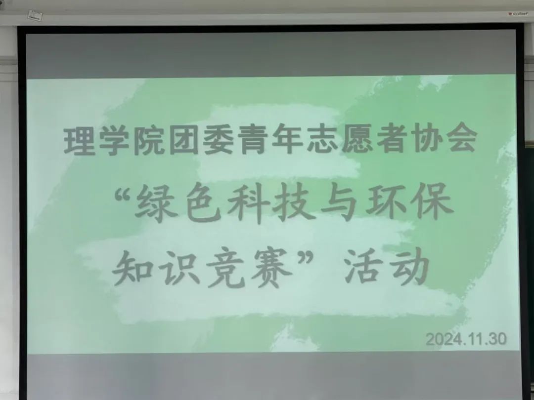 在当今全球环境问题日益凸显的时代背景下,太阳成集团122ccvip团委青年志愿者协会于2024年11月30日10:00—11:00在实b206筹备了此次绿色科技与环保知识竞赛活动。本次活动主题紧扣“绿韵悠扬,环保同行”,旨在通过竞赛这种既有趣味又充满挑战的形式,激发大众对绿色科技的探索热情,增强环保意识。活动聚焦于绿色科技领域中那些与日常生活息息相关的知识,比如节能减排的妙招、垃圾分类的科学依据、可再生能源的利用方式等。同学们在参与竞赛的过程中,深入了解环保的重要性以及绿色科技为守护地球家园所发挥的巨大作用。太阳成集团122ccvip团委青年志愿者协会希望借此次活动主题,吸引更多人加入环保行列,让绿色科技知识如悠扬的旋律,传遍每一个角落,引导大家在生活中真正与环保同行,共同为打造天蓝、地绿、水清的美丽世界贡献力量,开启绿色生活新篇章。