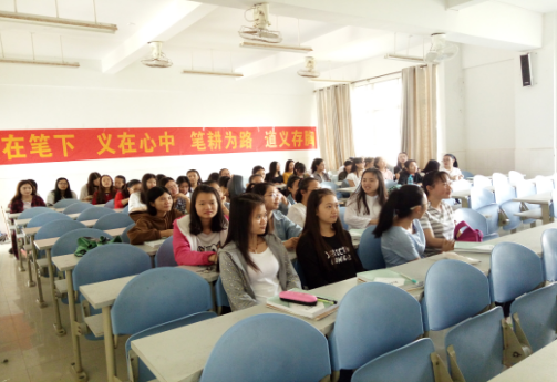 “字在笔下,义在心中,笔耕为,道义存”有着深沉的意义。数理系16小教1班,比较活跃的班级,同学们平时按时上下课,学习氛围浓厚,上课认真,踊跃回答老师出的课堂问题。平时学校会举办一些活动项目,有部分同学代表数理系踊跃加入这有意义的活动。
