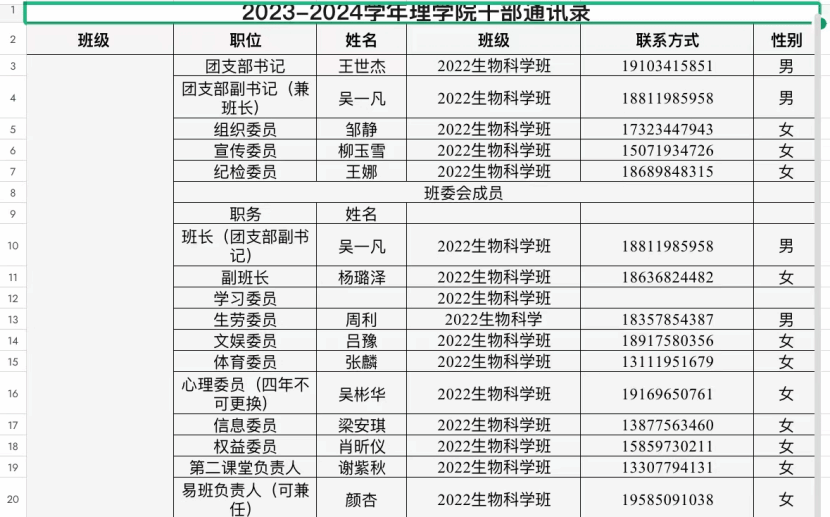 2022生物科学班委团结一致,各司其职,积极组织班级事务,维护班级纪律和秩序,在学习、生活中、工作上发挥出各自的作用,具备较好的班级管理能力。