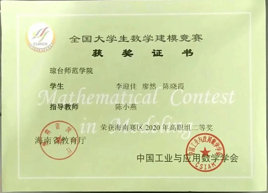 ·2022年琼台师范学院大学生数学建模大赛三等奖