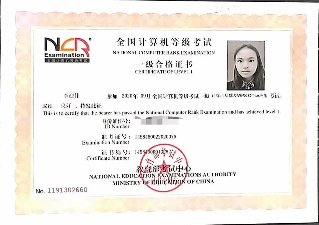 ·2020年9月 获得全国计算机等级考试一级合格证书