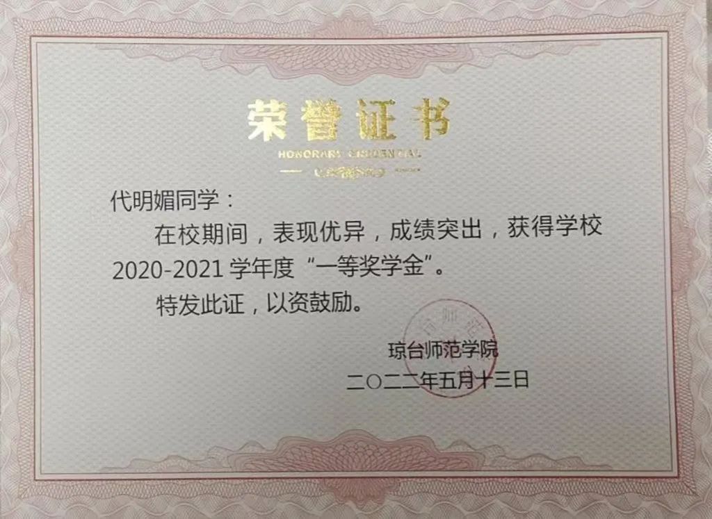 2020—2021学年度学校一等奖学金