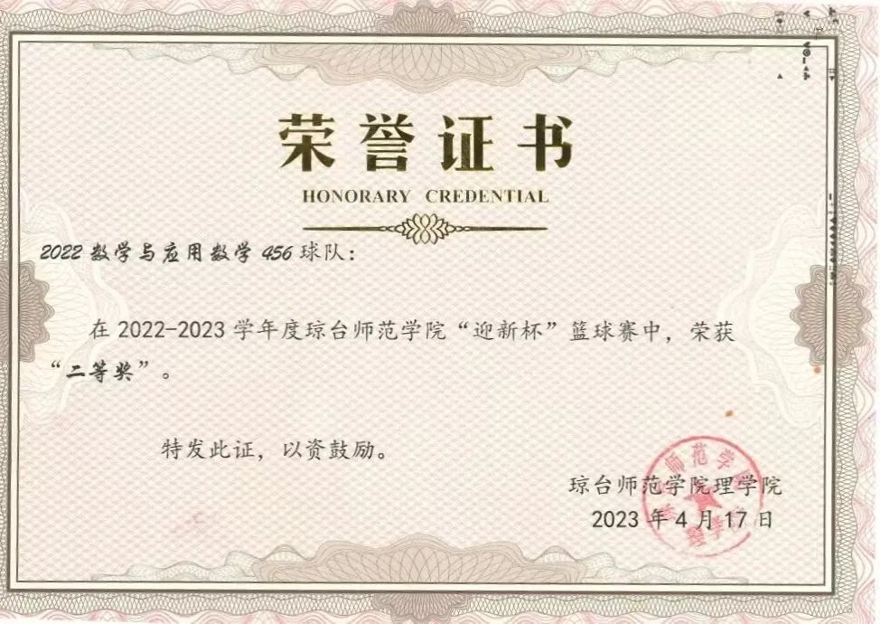 2023年获院迎新杯篮球赛二等奖