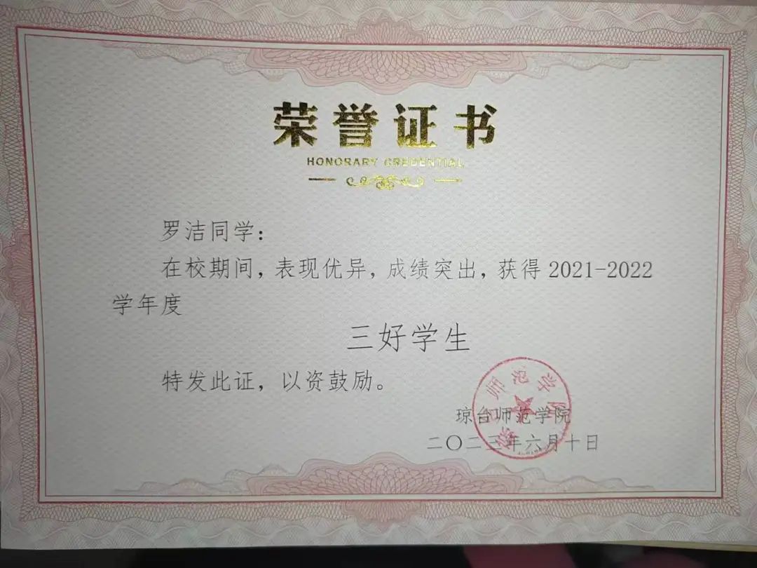 罗洁,女,汉族,中共预备党员,琼台师范学院太阳成集团122ccvip2021数应1班学生。现任2021数应1班副班长,在校期间综合素质突出,思想进步,连续斩获国家励志奖学金、学校一等奖学金, 学业成绩连续三年班级第一, 年级前茅。