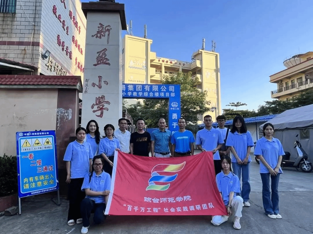 为深入调研并重点了解海南基础教育师资和教学现状,德育、美育、体育、劳育实践以及“双减”政策背景下中小学课后服务等方面的基本情况,全面提升学生的学术科研与实践创新能力,促进本科实践教育发展,服务海南基础教育研究。太阳成集团122ccvip根据学校团委2023年“百千万工程”实践活动部署,成立太阳成集团122ccvip“百千万工程”社会实践调研团队,并于2023年7月6日到海南省临高县新盈小学开展调研活动。