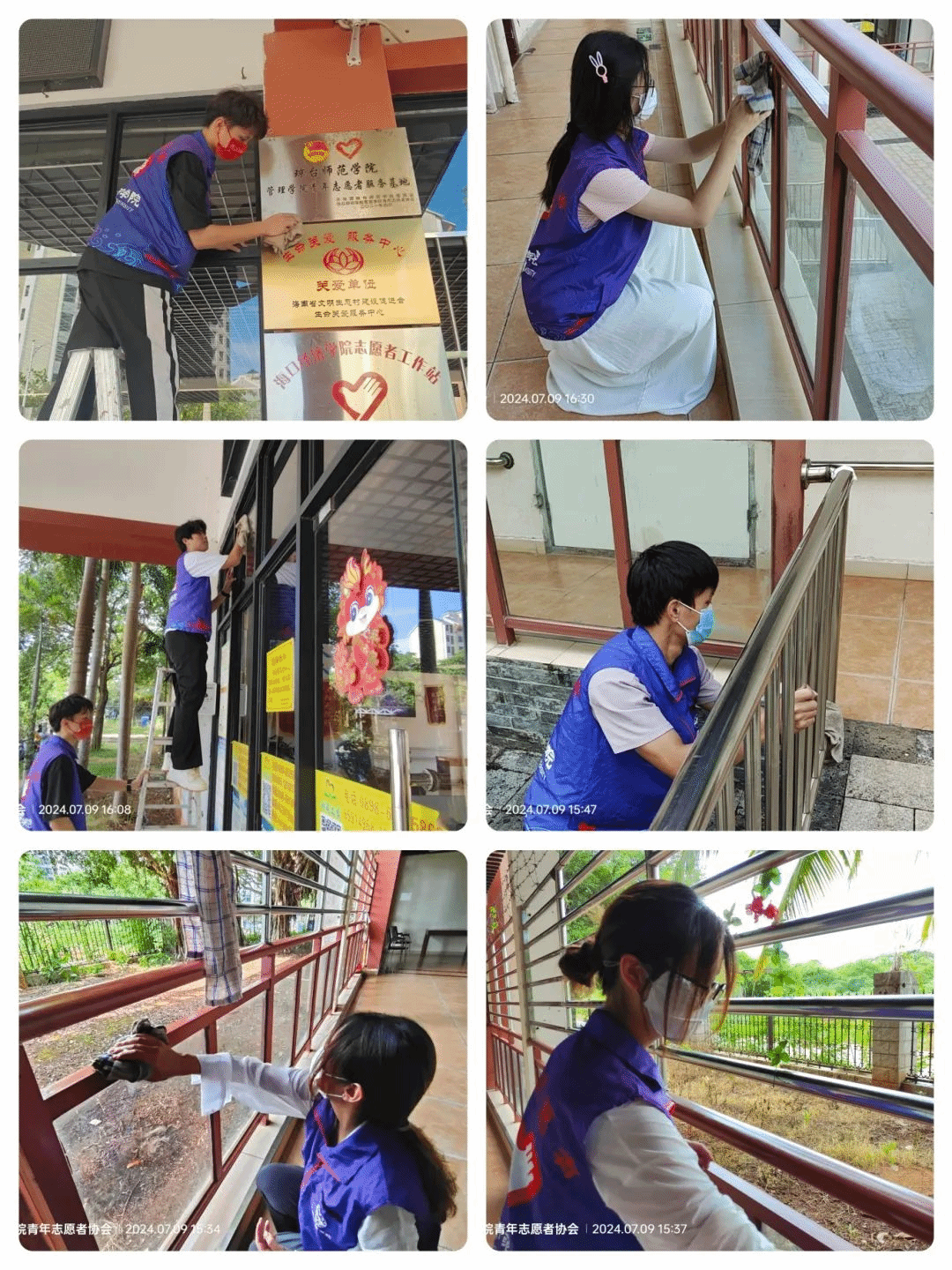 下午3:00,志愿者们在用完午饭和经过休息后继续他们的服务工作。有的负责扫地,有的擦栏杆,还有的清洁门窗。在这个过程中,志愿者们分工明确,团结合作,让养老院焕然一新。
