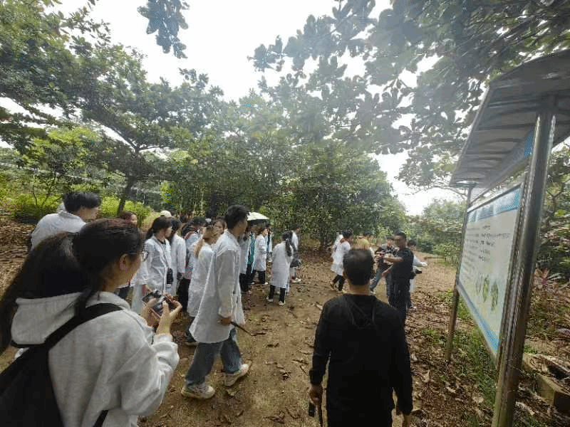 第三步;2021生物科学班的同学们进入了海南黎药园,老师向同学们介绍了海南黎药园,有沉香人工结香技术、林下生态符合种植展示区、农业废弃肥料化利用与生态肥料生产中基地。这里积极开展黎药资源植物及黎药知识的科普工作,为推动黎药资源的可持续利用,巩固黎族传统医药知识系统、挽救挖掘黎药资源,促进黎药产业发展和民族地区乡村振兴做出了贡献。