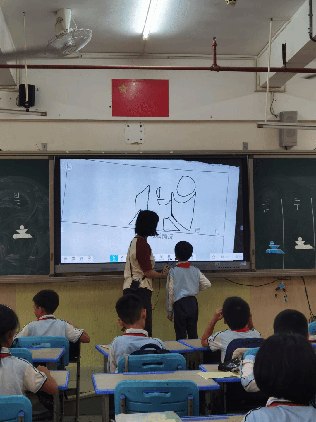 四年级课堂气氛热烈,同学们精神饱满、积极性高。在陈怡岐老师带领下,大家跟紧老师的步伐,用七巧板完成对成语故事的拼凑。依据七巧板知识要点,同学们大胆突破常规思维,脑海中智慧火花不断。随后各自独立拼图,遇难题时会小声讨论、分享思路,尽显团队协作精神。大家积极动脑、发挥动手能力,翻转拼接七巧板。同学们凭借丰富想象力,拼出各式新奇图案,玩出十足新意与创意,也深深感受到七巧板蕴含的数学乐趣。
