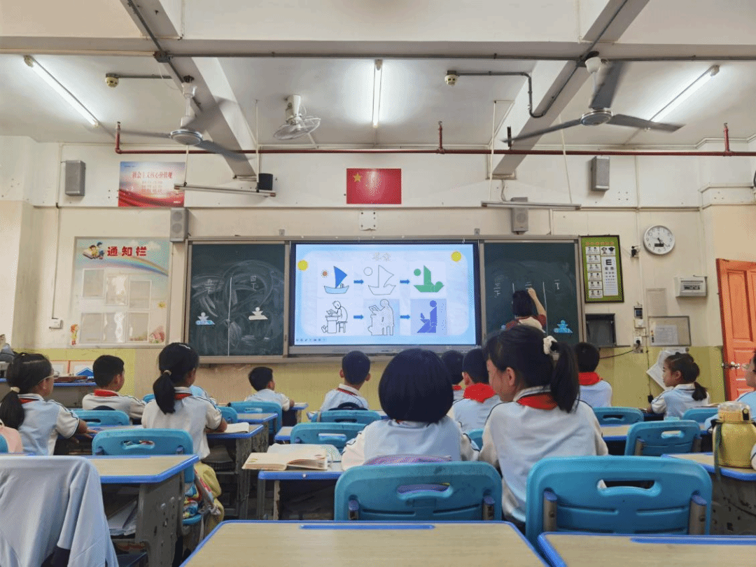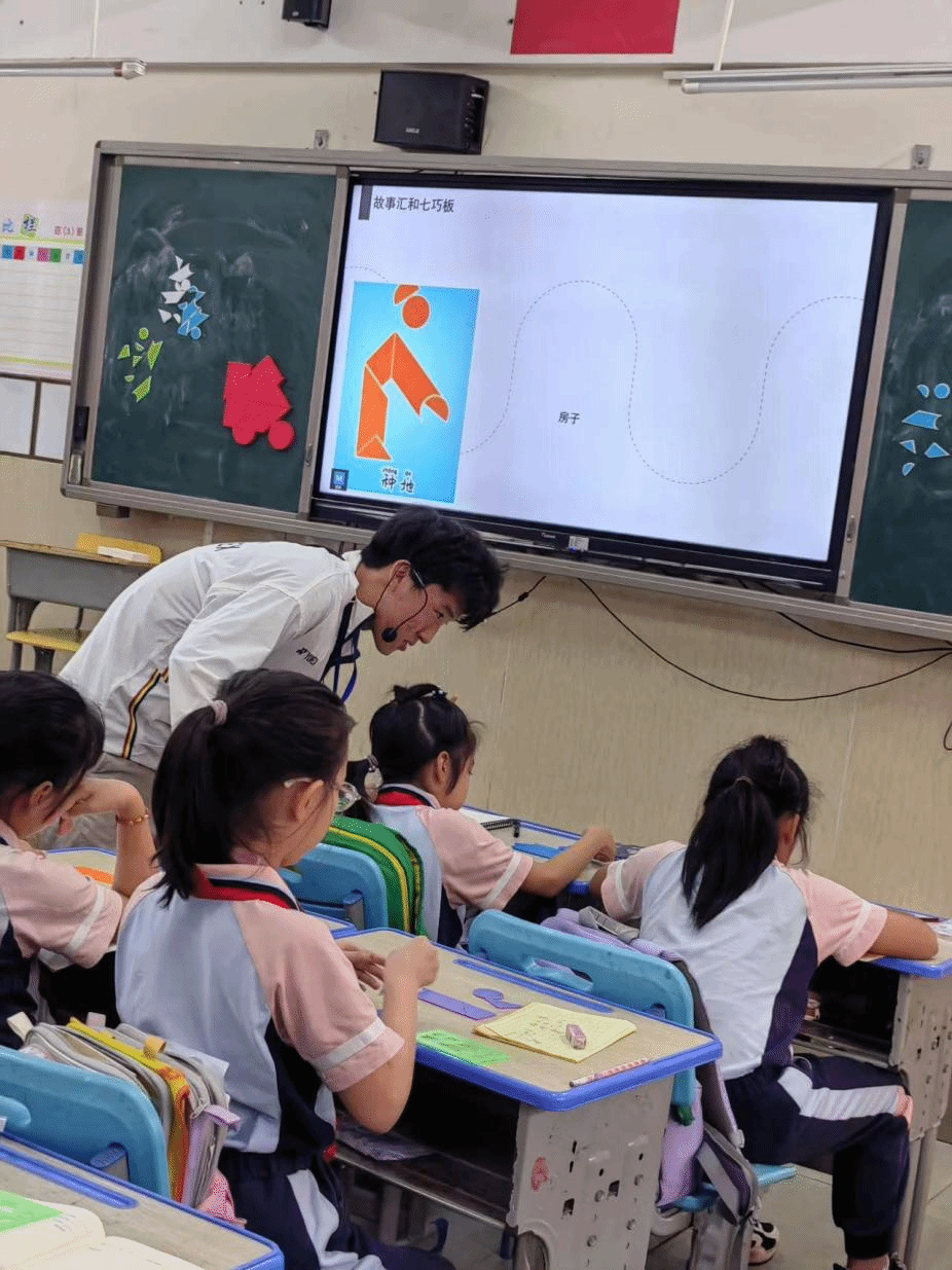 三年级的同学们全神贯注,在廖欣老师的带领下,仔细观察着课件出示的人物图片,观察创造。他们专注地聆听老师讲解智力七巧板拼图的要点和技巧,知道了如何用七巧板对特定人物进行拼图。随后,同学们纷纷动手尝试,依照给出的图片,凭借自己的思考和想象,独立完成智力七巧板的拼图。通过这次活动,同学们不仅锻炼了动手的实践能力,更提升了空间想象能力和逻辑思维能力,整个课堂沉浸在一片热烈且欢乐的氛围之中。