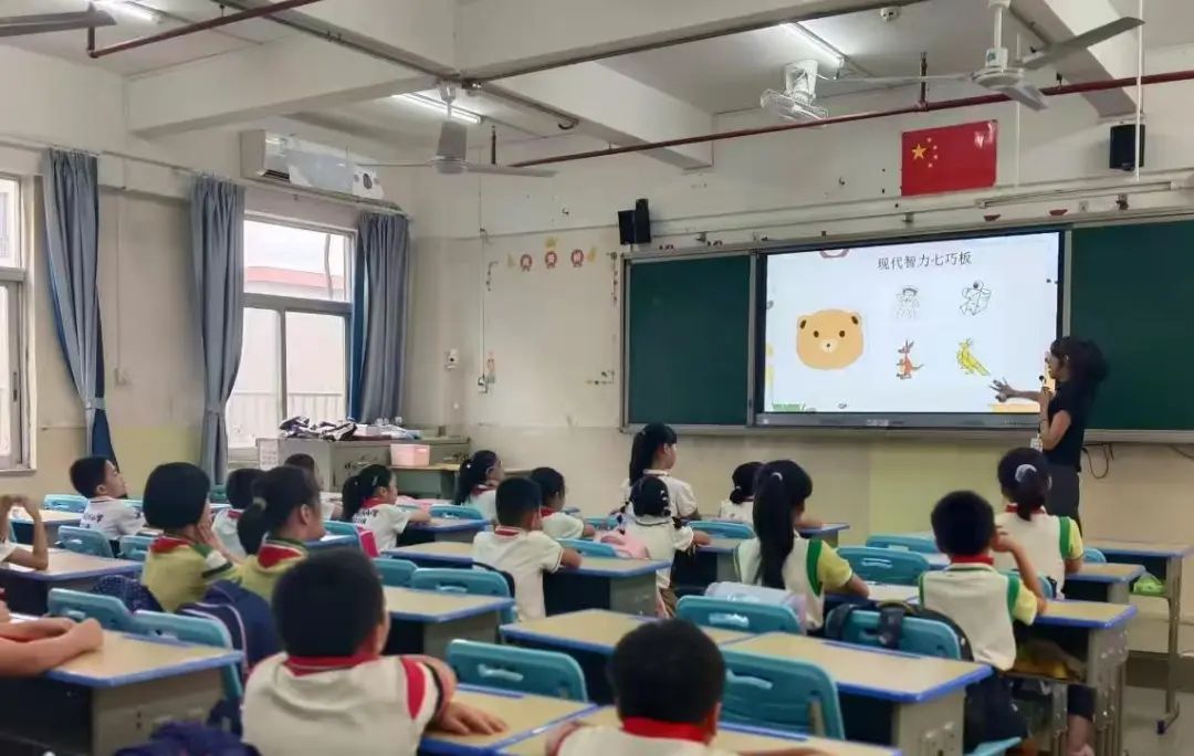 三年级的同学们认真听讲,在曹玉华老师的带领下了解了七巧板悠久的历史和深厚的文化底蕴。同学们积极地回答问题并主动展示学习成果,发展动手的活动能力,强化逻辑思维,课堂氛围较好。
