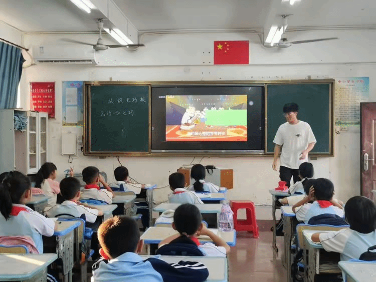 在教育的璀璨星河中,实践是那最闪耀的光芒,引领着实习生们探索知识的无尽奥秘。而七巧板,这一古老而神奇的智力玩具,就像一把神秘的钥匙,开启了琼台理院美安学校孩子们智慧成长的大门。在实习及课后服务活动中,七巧板教学成为了校园里一道亮丽的风景线,让实习生们一同走进这个充满趣味与挑战的奇妙世界。