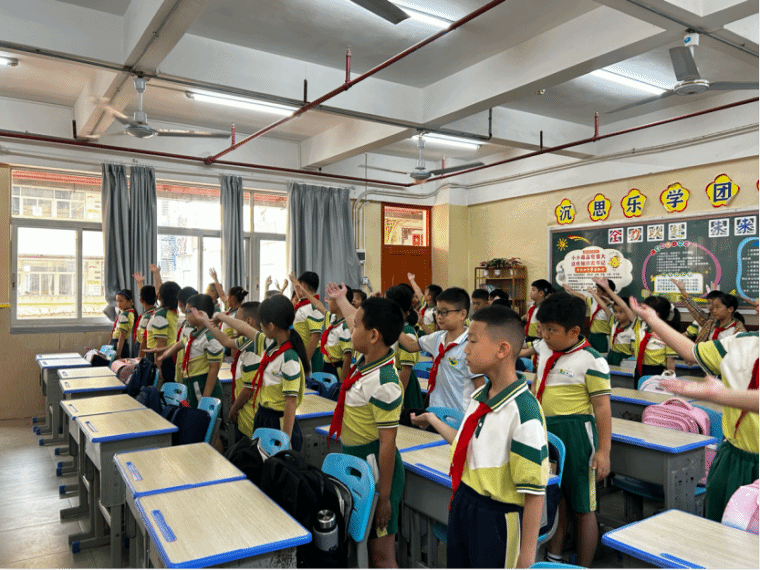 三年级的同学们认真听讲,在廖欣老师的课堂里大家活力四射,兴致满满,学会了按样拼图,并通过课堂活动完成了多种图形的拼接,同学们积极地回答问题并主动展示学习成果,发展动手的活动能力,强化与图形有关的逻辑思维,课堂氛围十分积极。