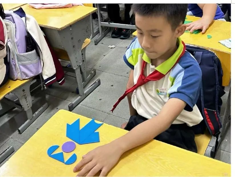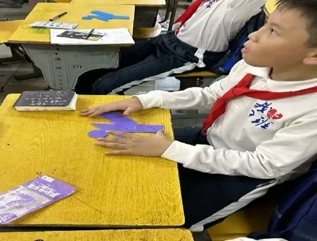四年级的课堂气氛尤为热烈。同学们个个精神饱满,积极性高涨。在汪尊翰老师的带领下,他们紧紧盯着课件中的图片,眼神里满是专注与好奇。依据所学的七巧板知识要点,同学们大胆地突破常规思维的束缚,脑海中不断闪现出智慧的火花。他们各自独立进行拼图,遇到难题时,小声地相互讨论,彼此分享思路,将团队协作精神展现得淋漓尽致。大家积极开动脑筋,充分发挥动手能力,不停地翻转、拼接七巧板。凭借着丰富的想象力,他们拼出了各式各样新奇的图案,把七巧板玩出了满满的新意与创意,同时也深深地感受到了七巧板中所蕴含的数学乐趣。