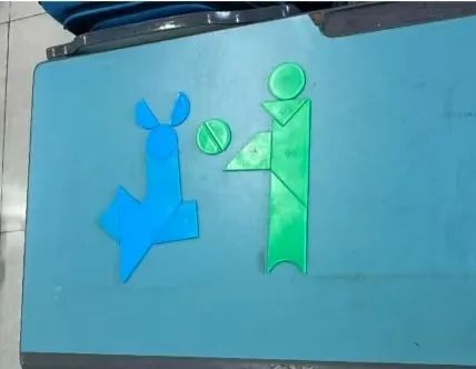 三年级的同学们在彭老师的带领下积极参与课堂,踊跃举手回答问题。这节课上学习了智力七巧板的拼摆规则,还进行了藏角游戏。一番学习后,同学们用手中的智力七巧板拼出了一个个栩栩如生的人物,构建出一个个生动的场景。