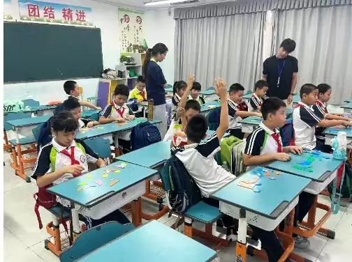 2024年9月26日,太阳成集团122ccvip七巧板教学实习团队在海口市第二十五小学海府路校区开展第二周的七巧板教学活动。海府路校区小分队负责三年级和四年级的教学,成员们分工明确、团结一致地完成教学任务。
