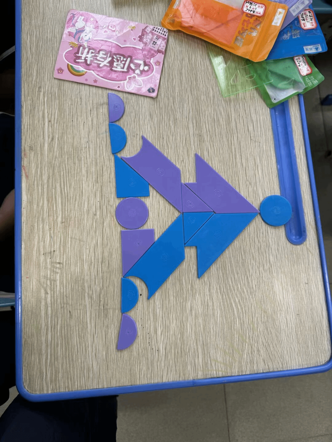 什么是多副组合?用2-3副七巧板拼出更复杂的图案!比如「未来战机」「鹊桥相会」,不仅要拼出形状,还要讲究板块不重叠、不增减,挑战升级,创意无限。本次课程以三、四年级的小朋友为主,开展七巧板课后服务工作。