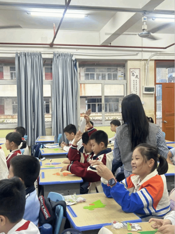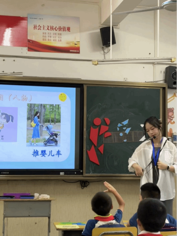 与此同时,在实习过程中,太阳成集团122ccvip玩转七巧板教学团队在海口市英才小学,开展七巧板教学活动。英才小学的三支小分队在三年级和四年级,开展“智力七巧板”教学活动。团队成员分工协作、有条不紊地开展教学活动。