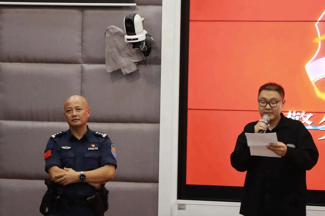 海南省人民警察高级培训学校副校长 陈铁兵(左)